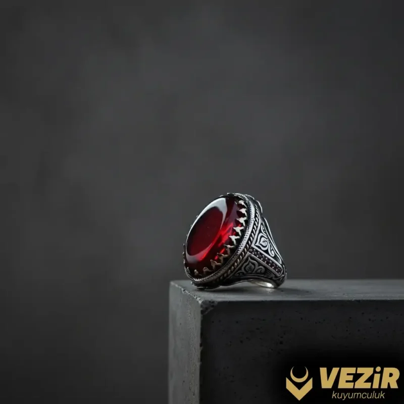 Kırmızı Taşlı Gümüş Yüzük