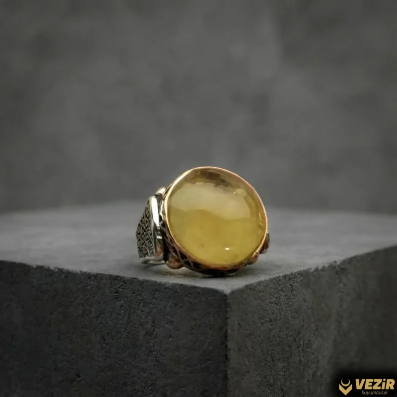 Orijinal Damla Kehribarlı Gümüş Yüzük