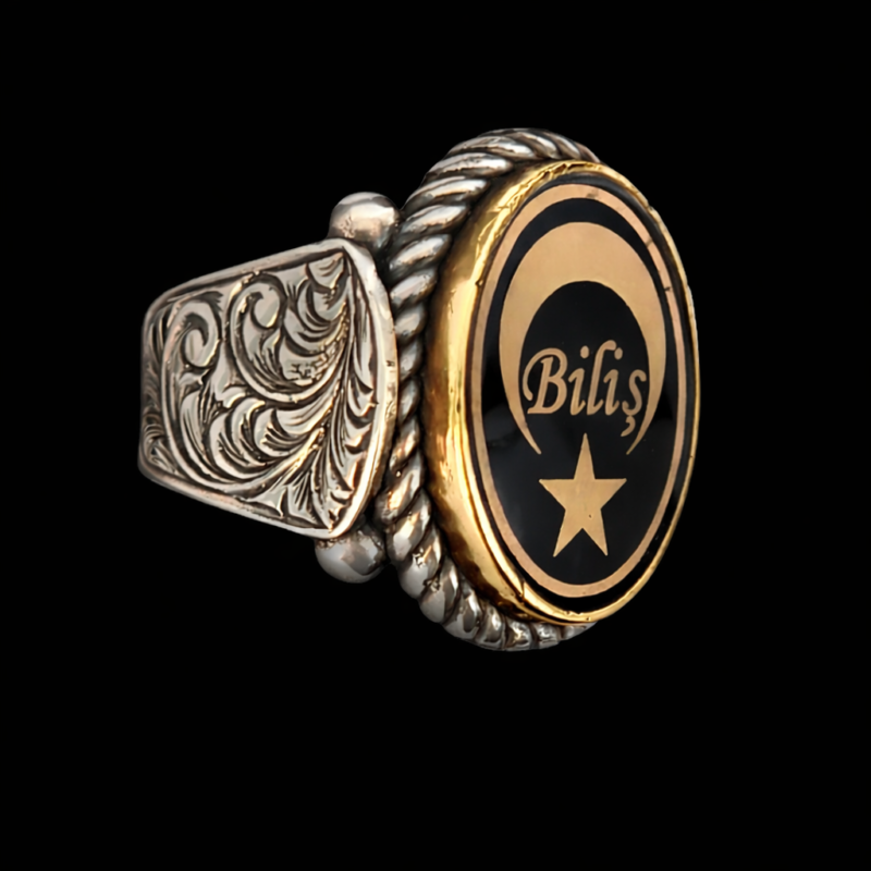 Kırmızı ateş kehribar içerisine oyma olarak isimli Ayyıldız işlenmiştir .