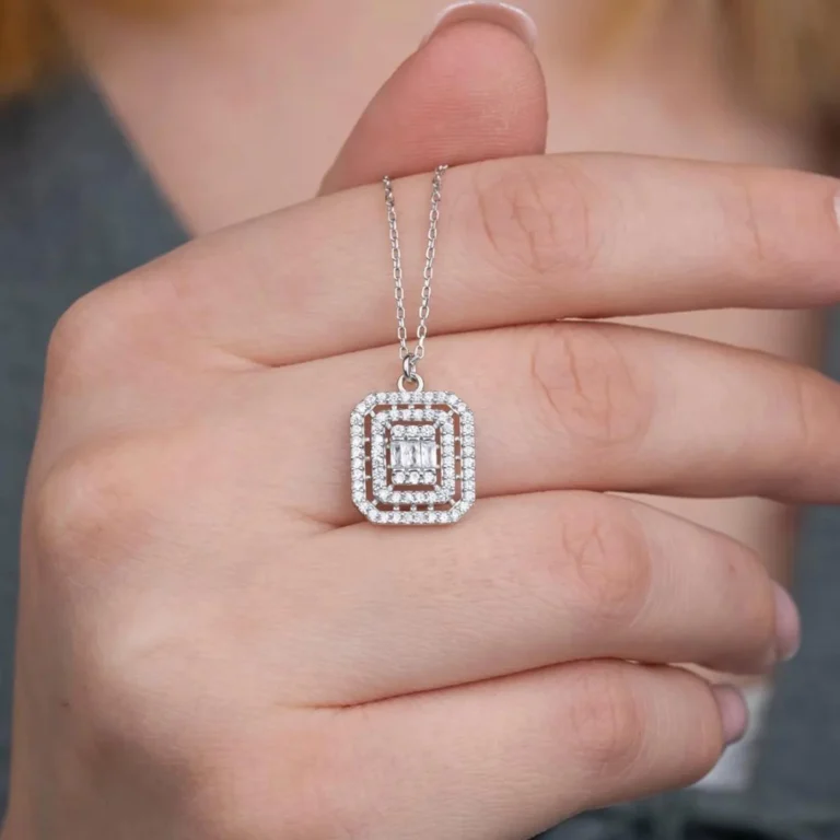 Baget ve Pırlanta Işıltılı Gümüş Kolye Modeli