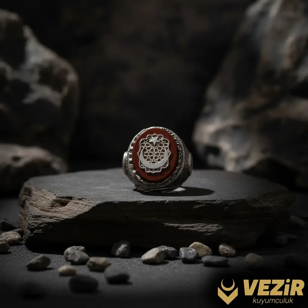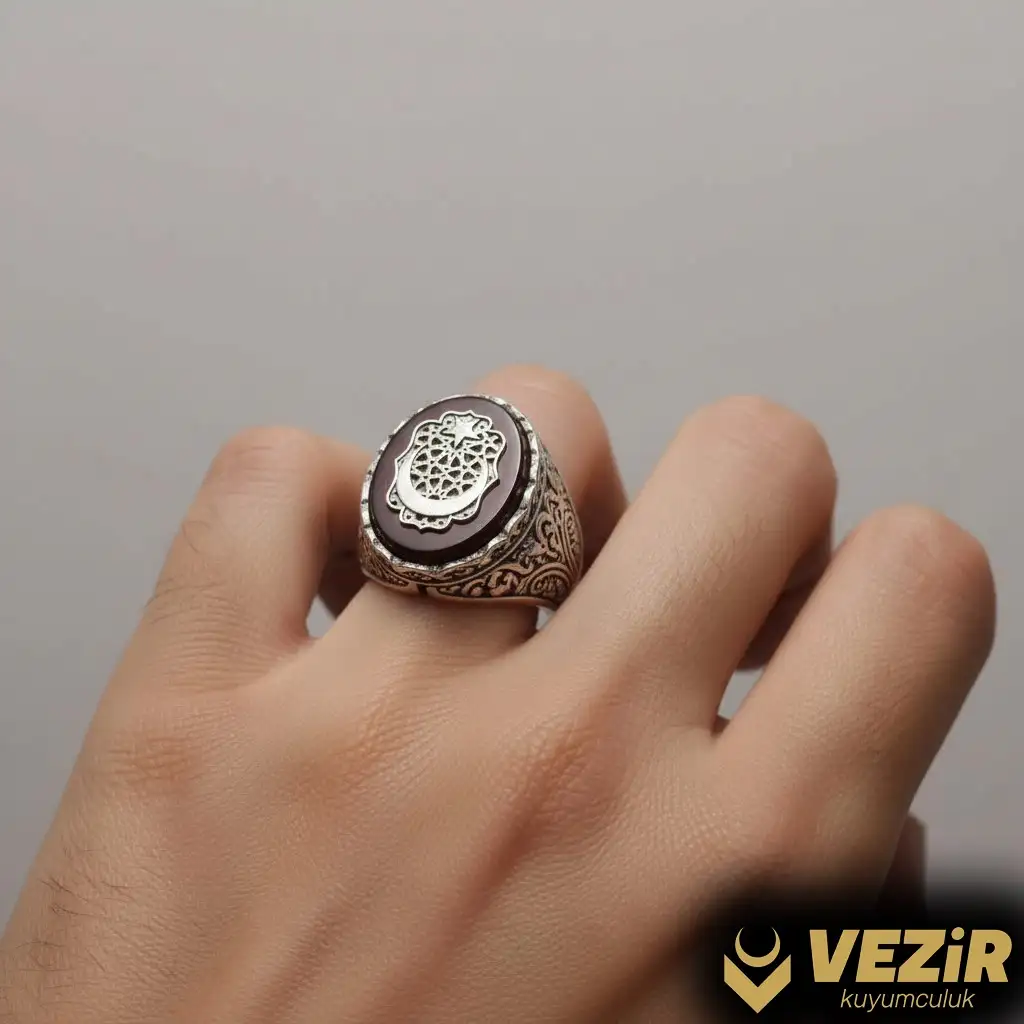 Yan kısımlarında yer alan ayyıldız motifleri, Türk kültürünün ve milli kimliğinin önemli sembollerindendir. Yüzüğün tasarımına entegre edilen bu motifler, hem tarihsel bir anlam taşır hem de estetik bir görünüm sağlar. Ayrıca, yüzüğün tasarımı Osmanlı tuğrası detayı ile zenginleştirilebilir, bu da tarihin derinliğini ve kültürel mirası temsil eder.