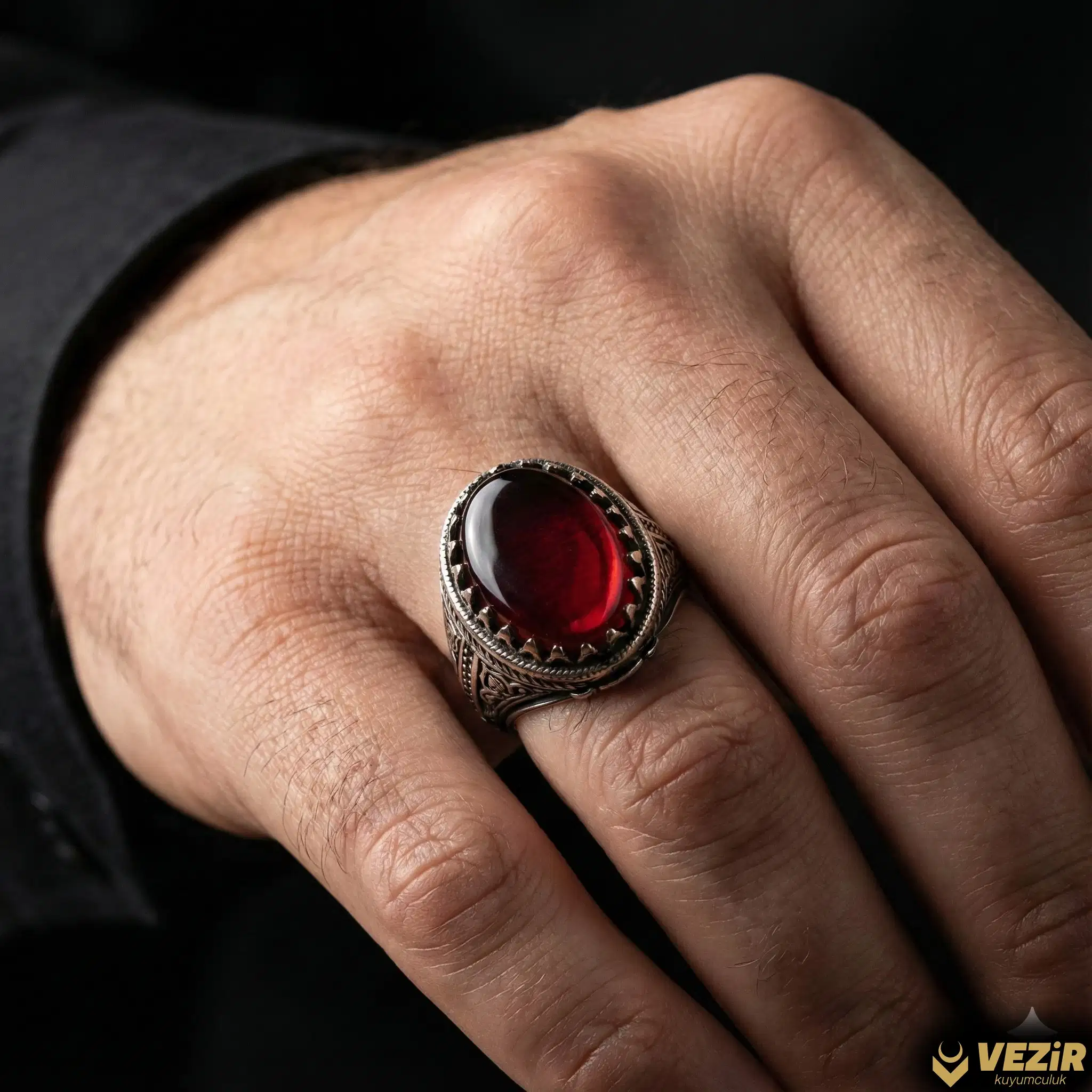 Yüzüğün üzerine ustalıkla işlenmiş Osmanlı desenleri, geleneksel Türk motiflerinin zarif bir temsilidir. Kalem işçiliğiyle özenle işlenen bu desenler, yüzüğe tarihî ve kültürel bir derinlik katarak, klasik ve modern tasarım öğelerini mükemmel bir şekilde birleştirir. Kırmızı Ateş Gümüş Yüzük, bu birleşimle birlikte sanatın ve kültürün aydınlatıcı gücünü yansıtır.
