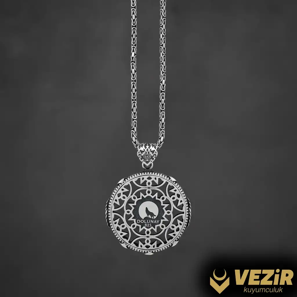 Tasarım ve Malzeme: Bozkurt Gümüş Madalyon, 925 ayar gümüşten üretilmiş olup, 2 mm kalınlığında ve 60 cm uzunluğunda kral zincir ile tamamlanmıştır. Bu özel tasarım, tarih ve kültürün bir araya geldiği bir sanat eseridir.