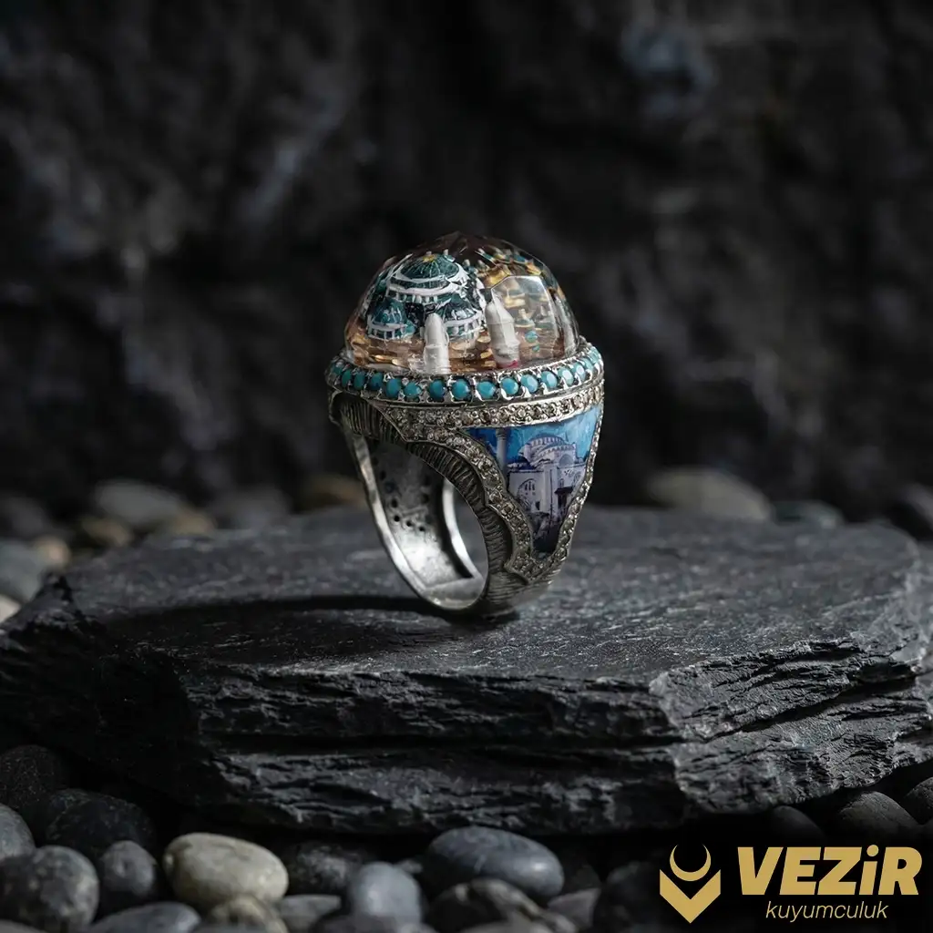 Çamlıca Gümüş Yüzük, İstanbul’un sembol yapılarından biri olan Çamlıca Camisi’nden ilham alınarak tasarlanmıştır. Caminin zarif mimari detayları ve estetik unsurları, yüzüğün tasarımında özenle işlenmiştir. Bu özel model, hem estetik zarafeti hem de anlamlı sembolizmi bir araya getirir.