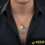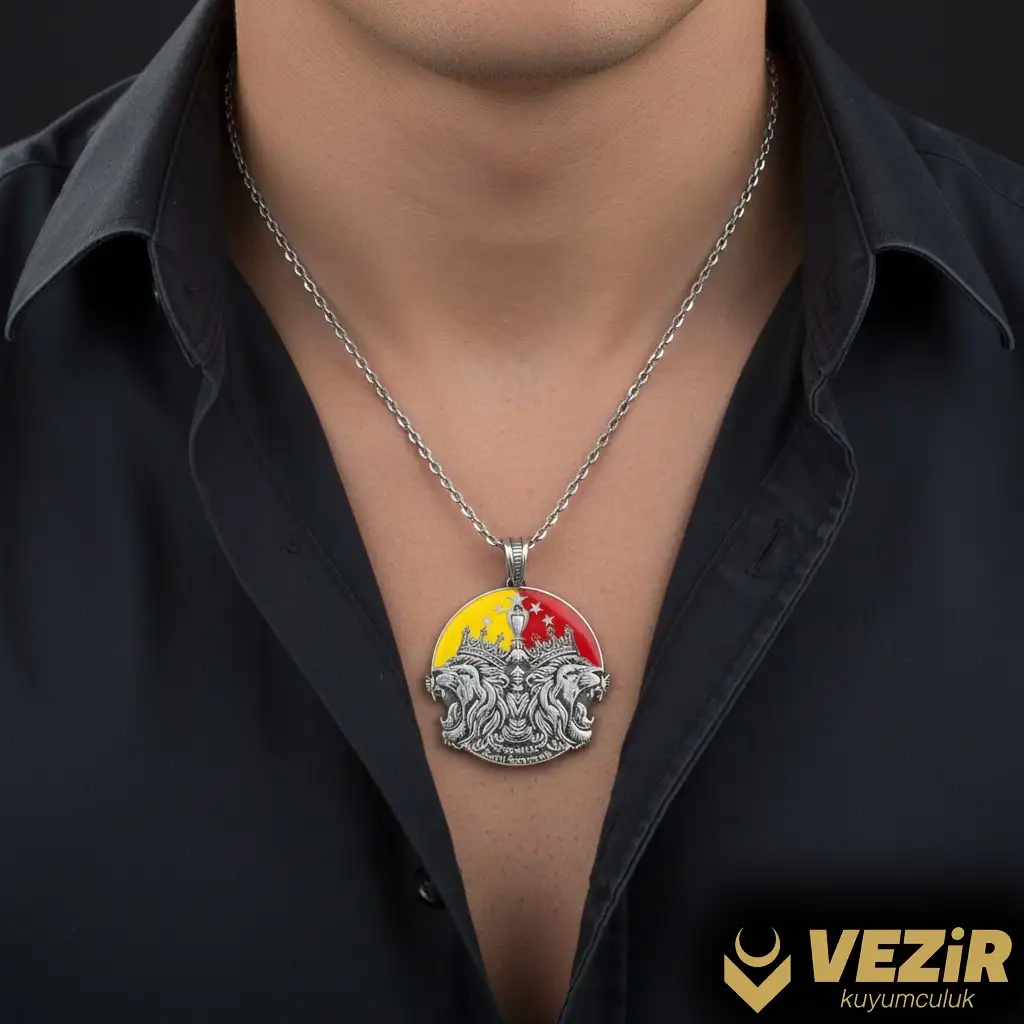 Asaletin, egemenliğin ve cesaretin sembolü olan çift başlı aslan figürü, bu özel tasarım madalyon kolyede hayat buluyor. Sarı ve kırmızı tonlarla zenginleştirilen kolye, sadece güçlü bir aksesuar değil; aynı zamanda karakterinizi ve duruşunuzu yansıtan özel bir parçadır.