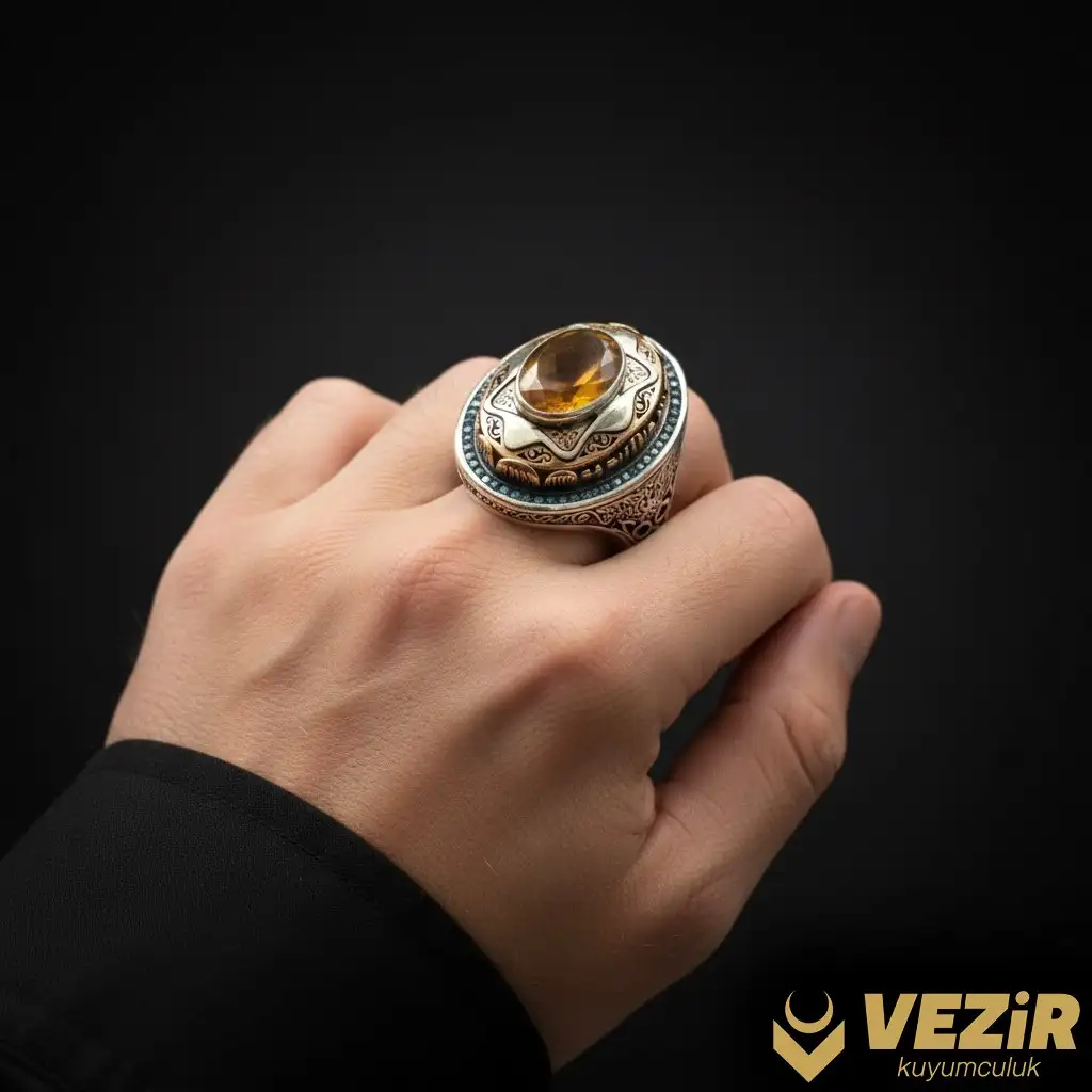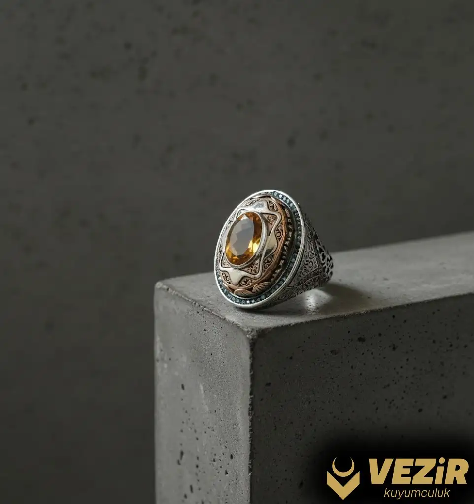 Sitrin Taşlı El Yapımı Gümüş Yüzük: Zarif Tasarım ve Manevi Anlam