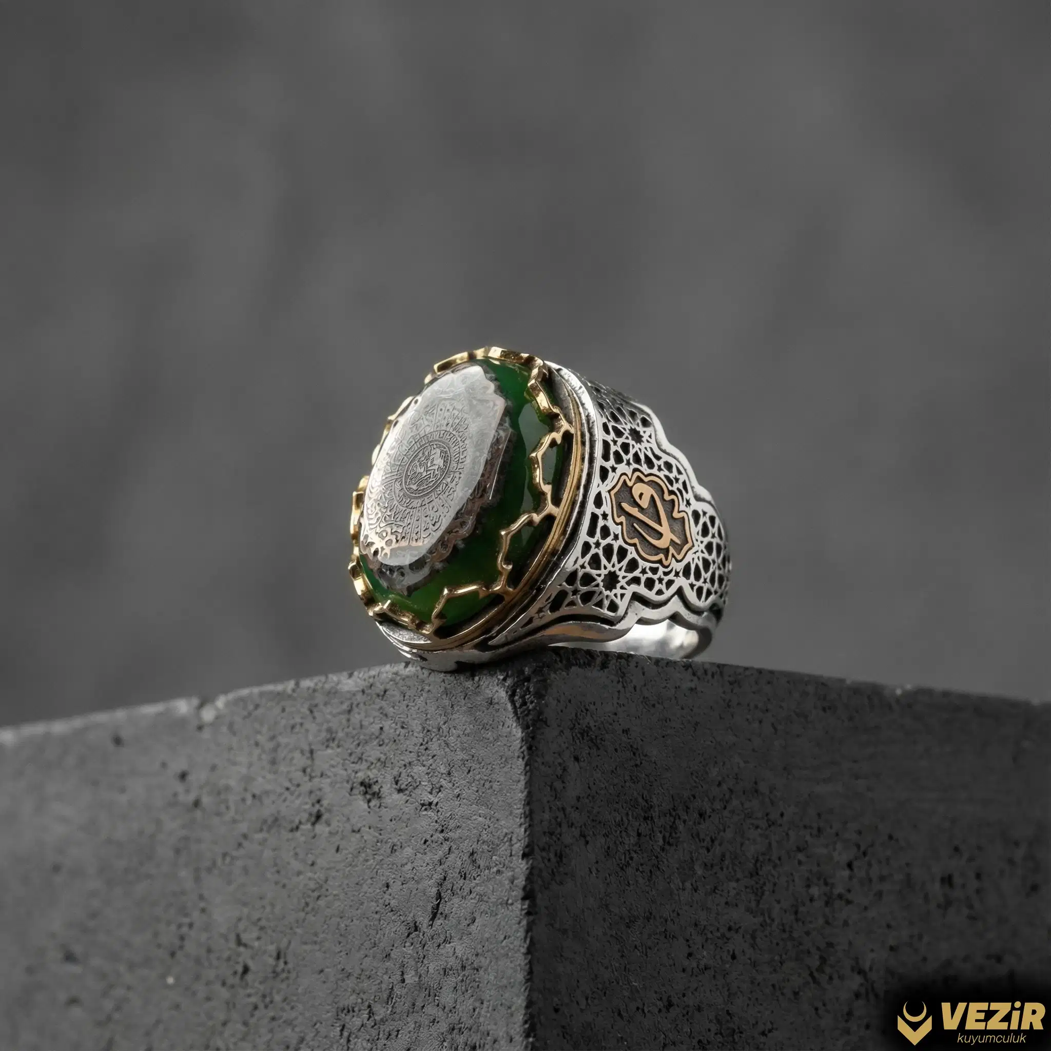 Elzem Gümüş Yüzük, tarihi ve dini motiflerin zarif bir kombinasyonunu sunar. Yüzüğün yan kısımlarında yer alan Selçuklu motifleri, geleneksel Türk sanatının izlerini taşır ve yüzüğe tarihî bir derinlik kazandırır. Bu detaylar, yüzüğün estetik değerini artırırken, kültürel mirası da yansıtır.