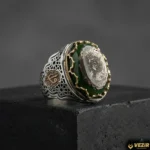 Elzem Gümüş Yüzük, tarihi ve dini motiflerin zarif bir kombinasyonunu sunar. Yüzüğün yan kısımlarında yer alan Selçuklu motifleri, geleneksel Türk sanatının izlerini taşır ve yüzüğe tarihî bir derinlik kazandırır. Bu detaylar, yüzüğün estetik değerini artırırken, kültürel mirası da yansıtır.