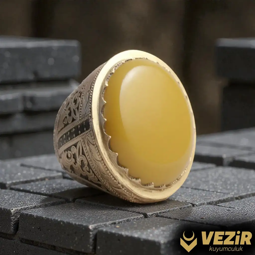 Yüzüğün yapımında kullanılan 925 ayar gümüş, kalite ve zarafeti bir araya getirir. Gümüşün parlaklığı ve dayanıklılığı, kehribar taşının sıcak tonları ile mükemmel bir uyum içindedir. Gümüş işçiliği, yüzüğe hem estetik bir değer katar hem de uzun ömürlü kullanım sağlar.