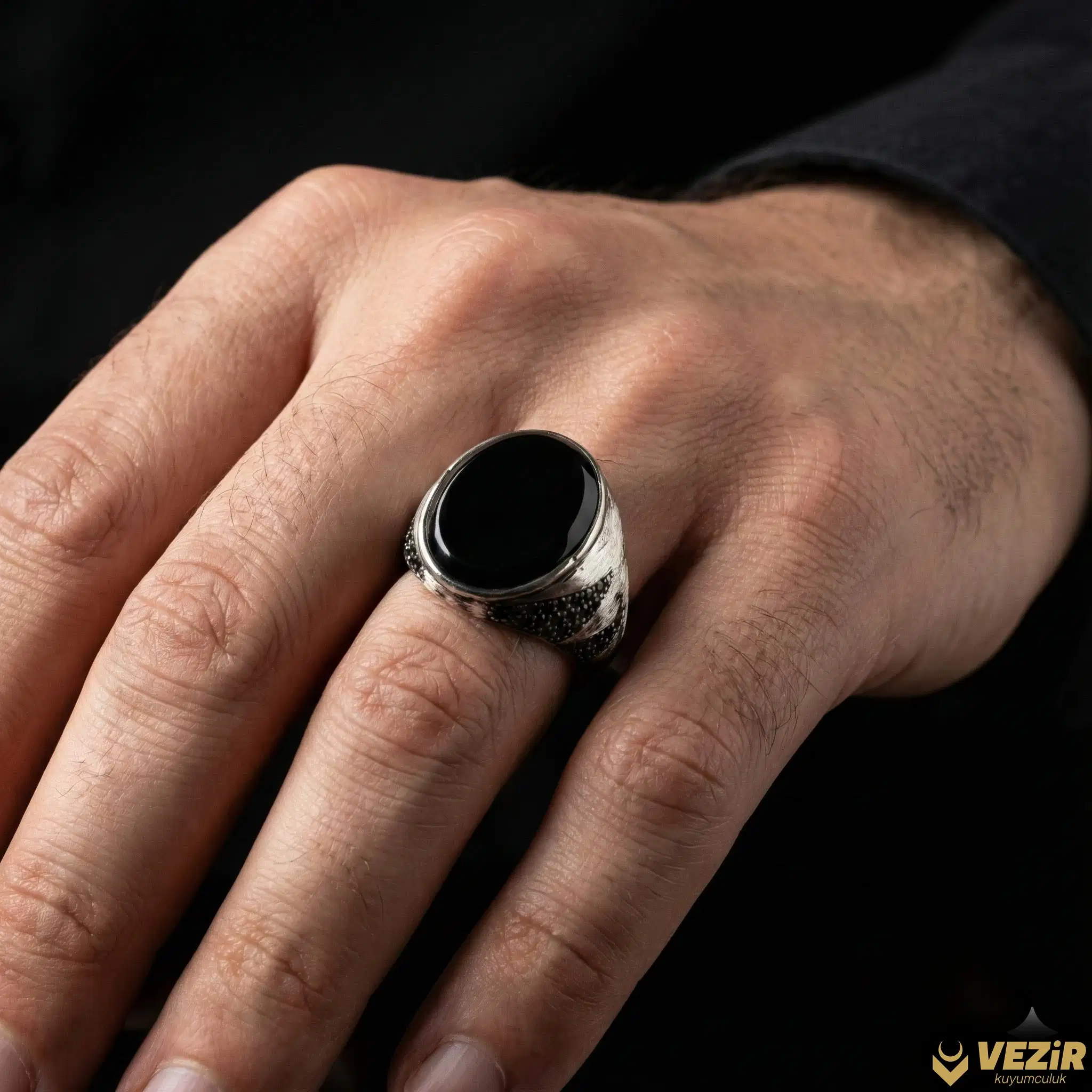 Yüzüğün yan ve üst kısımlarında yer alan yarı değerli zirkon taşları, tasarıma zarif bir parıltı katar. Zirkon taşlarının ince detayları, yüzüğe şık ve zarif bir hava getirirken, modern tasarımı zenginleştirir. Bu taşlar, mat yüzeyle mükemmel bir kontrast oluşturarak, göz alıcı bir görünüm sağlar.