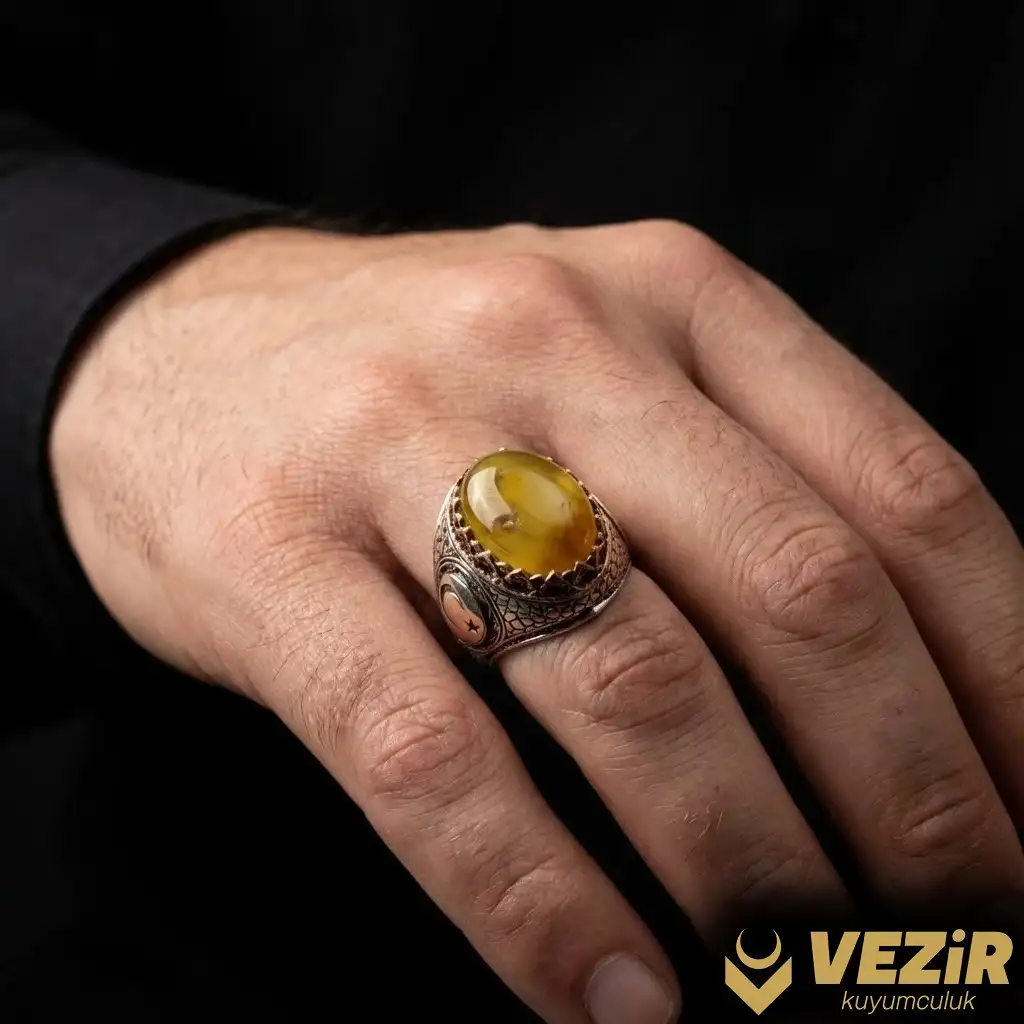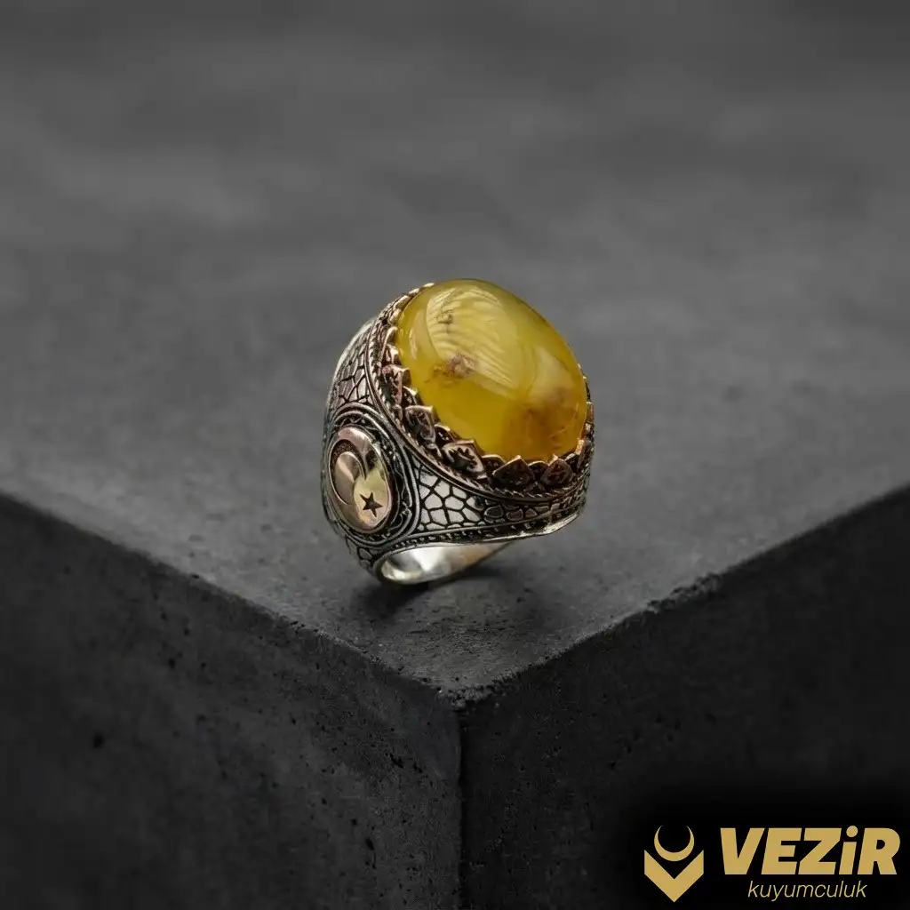 Yüzüğün yan kısımlarında bulunan ayyıldız işlemesi, Türk kültürünün ve tarihinin önemli bir sembolüdür. Ayyıldız, hem milli duyguları hem de manevi değerleri temsil eder. Bu işlemeyle yüzüğe ekstra bir anlam katılır ve tasarımın derinliği artırılır.