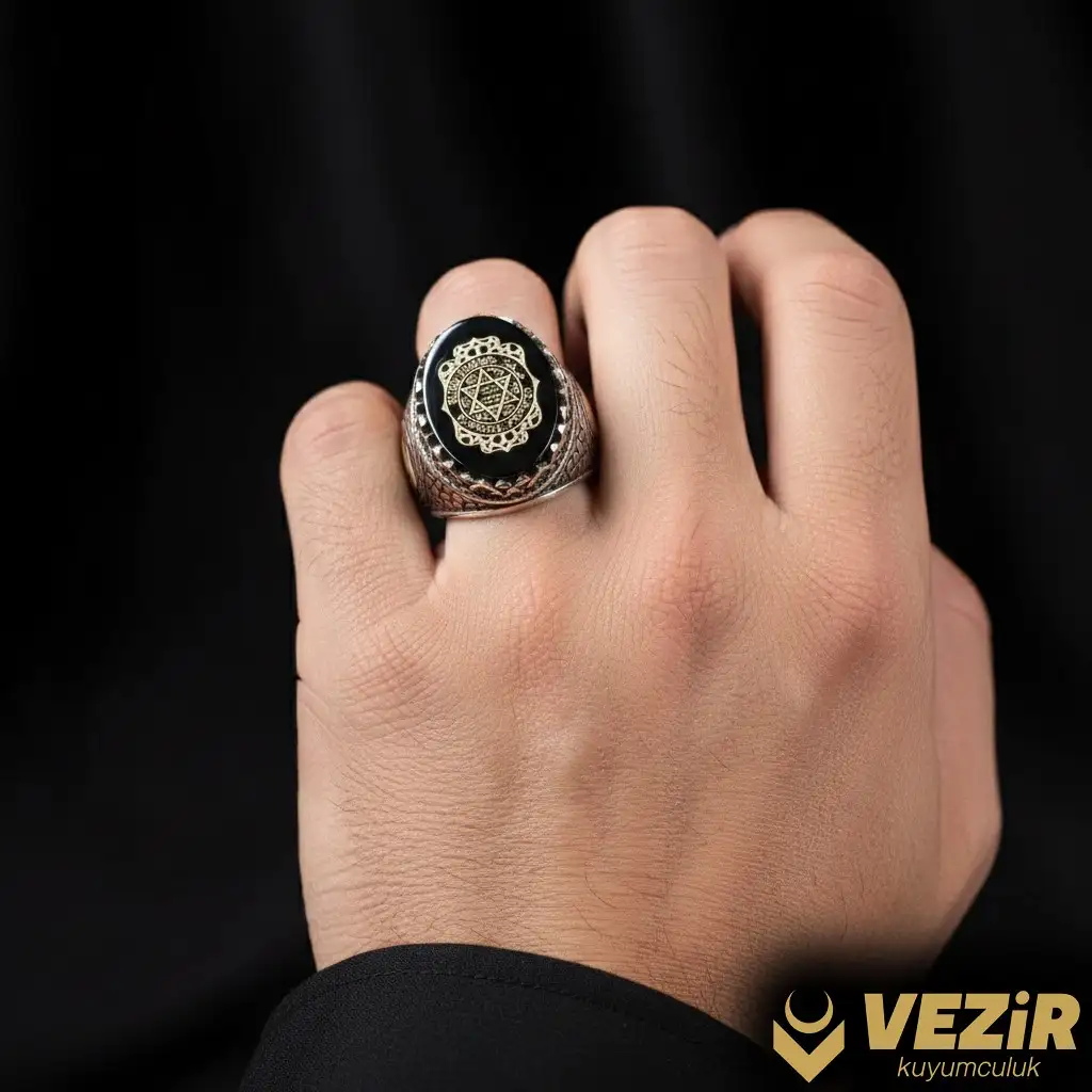 Yan kısımlarda yer alan ay-yıldız ve Osmanlı tuğrası motifleri, Türk kültürünün ve tarihinin önemli sembolleridir. Ay-yıldız, Türkiye’nin milli simgesini temsil ederken, Osmanlı tuğrası ise Osmanlı İmparatorluğu’nun zarif ve güçlü mirasını yansıtır. Bu detaylar, yüzüğe hem tarihsel hem de kültürel bir derinlik kazandırır.