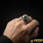 Yüzüğün merkezinde yer alan Mescid-i Aksa detayları, negatif oyma tekniği ile ustalıkla işlenmiştir. Bu işçilik, yüzüğe derinlik ve anlam katarken, Mescid-i Aksa’nın önemini vurgular. Yanlarında bulunan mikron karnet taşları ise yüzüğe göz alıcı bir parlaklık ve zenginlik katar, zarif bir dokunuş sunar.