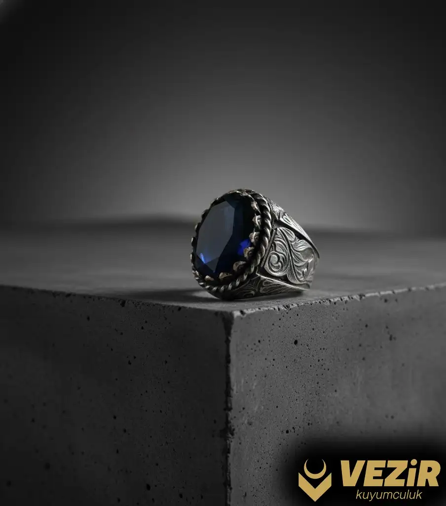 Lacivert oniks taşı, derin ve etkileyici rengiyle dikkat çekerken, yüzüğün kişiye özel gravür seçenekleriyle anlam kazanan bir tasarım oluşturur. Oniks taşının gücü ve zarafeti, yüzüğün her anında hissedilir. Lacivert renginin koyu ve etkileyici tonu, bu yüzüğü diğerlerinden ayıran özel bir dokunuş sunar. Yüzüğün tasarımında kullanılan oniks taşı, hem estetik hem de manevi bir derinlik sağlar, bu da onu sıradan bir aksesuardan çok daha fazlası yapar.