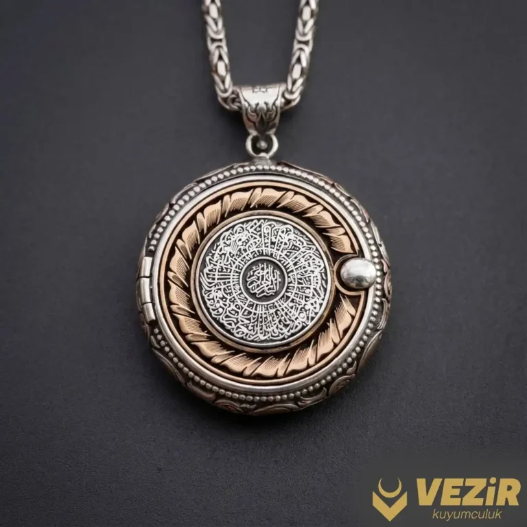 Kelime-i Tevhid Gümüş Madalyon Kolye, 925 ayar gümüşten yapılmış ve içerisinde Kelime-i Tevhid’in (Allahtan başka ilah yoktur, Hz. Muhammed onun elçisidir) işlenmiş zarif bir takı parçasıdır. İnanç ve maneviyatın sembolü olan bu kolye, estetik ve anlamı bir araya getirerek güçlü bir mesaj iletmektedir. Hem günlük kullanıma hem de özel günlerde hediye olarak mükemmel bir seçenektir.