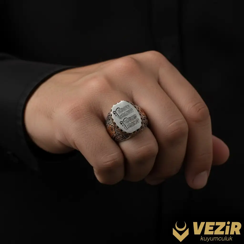 Yüzüğün diğer bir önemli özelliği ise Esma-i Hüsna’dan El-Kaviyy ve El-Hafız isimlerinin işlenmiş olmasıdır. El-Kaviyy, “Kuvvetli” anlamına gelirken, El-Hafız, “Koruyan” anlamındadır. Bu isimler, kişinin manevi gücünü ve korumasını artırmak amacıyla seçilmiştir. Esma-i Hüsna’nın bu iki ismi, yüzüğe derin bir manevi değer katarak, taşıyan kişiye güç ve güven sağlar.