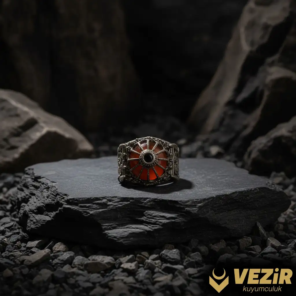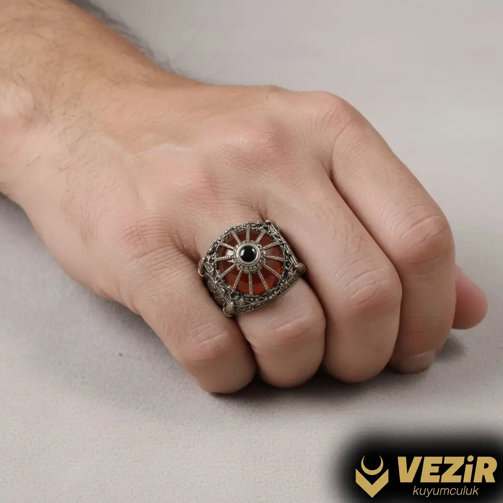 Yüzüğün üzerinde yer alan akik taş, hem estetik hem de manevi değerler taşıyan bir taştır. Akik, tarih boyunca koruyucu ve dengeleyici özellikleriyle bilinir. Ayrıca, kişisel gücü artırdığına ve ruhsal huzuru desteklediğine inanılır. Yüzüğün bu özel taşla süslenmiş olması, hem zarif bir görünüm kazandırır hem de manevi bir anlam ekler.