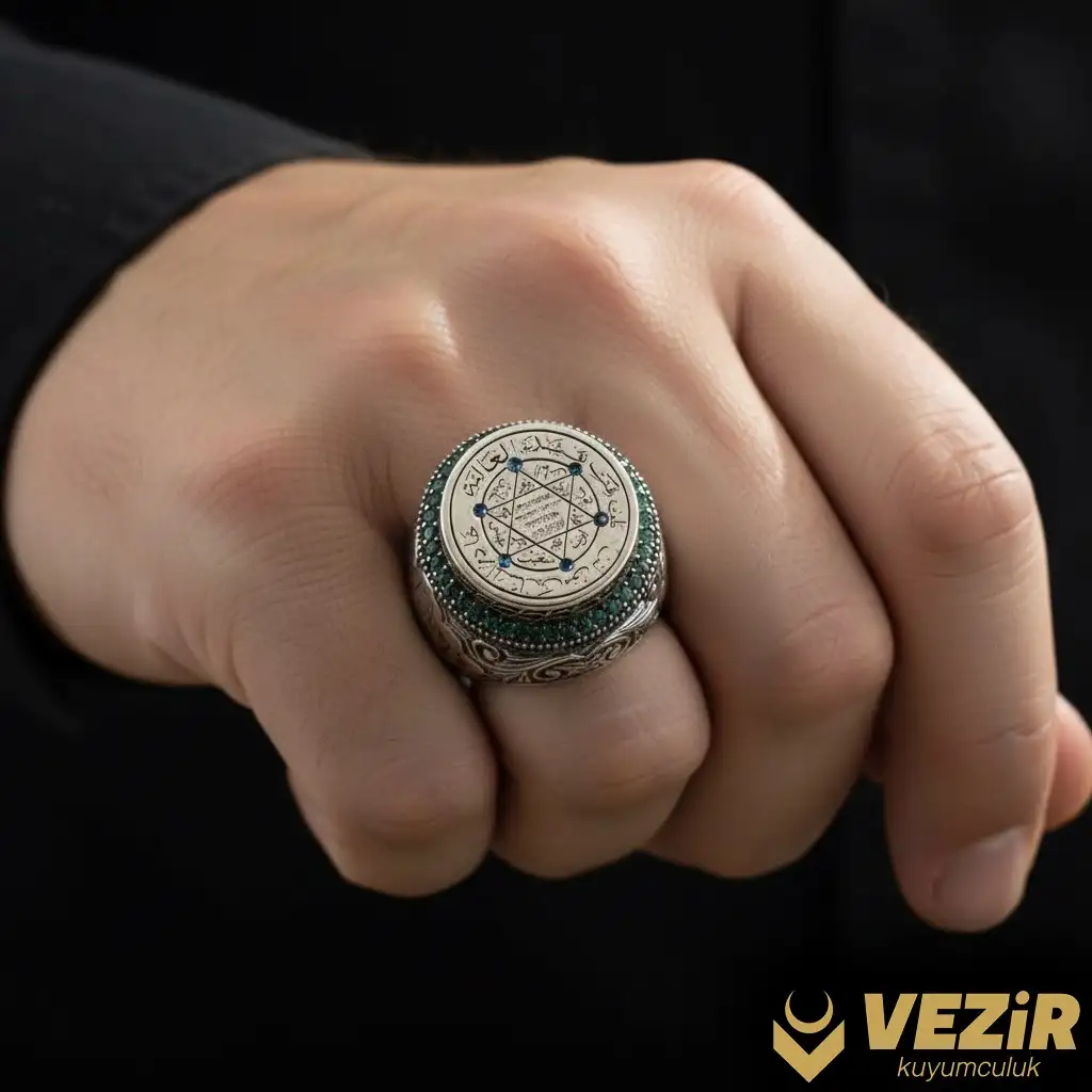 Süleyman Mührü Gümüş Yüzük, Hz. Süleyman’ın mührünü gururla taşır. Tarihi bir simge olan bu mühür, yüzüğe hem manevi hem de kültürel bir derinlik katar. Süleyman Mührü, çeşitli medeniyetler ve inançlar tarafından büyük bir önem taşır, bu nedenle yüzüğün her detayı bu sembolün anlamını yansıtacak şekilde özenle tasarlanmıştır.