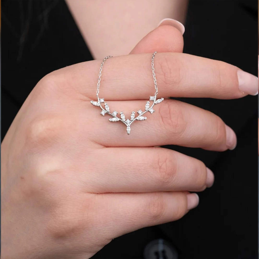 Yaprak Motifli Gümüş Kolye, Dal Modeli Kolye, 925 Ayar Gümüş Kadın Kolye, Zarif Gümüş Takı, Minimal Tasarım Kolye, Işıltılı Kadın Kolye, Vezir Kuyumculuk
